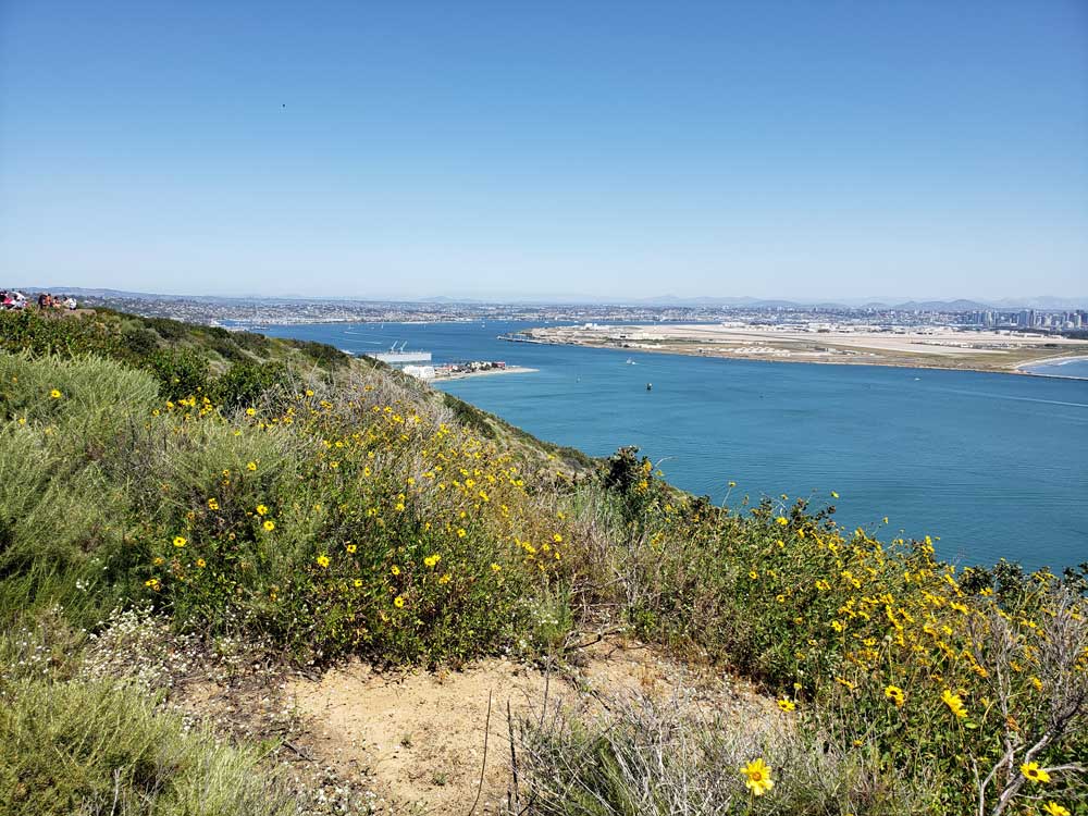 The park offers a view of San Diego's harbor and skyline, as well as Coronado and Naval Air Station North Island. On clear days, a wide expanse of the Pacific Ocean, Tijuana, and Mexico's Coronado Islands are also visible. A visitor center screens a film about Cabrillo's voyage and has exhibits about the expedition.