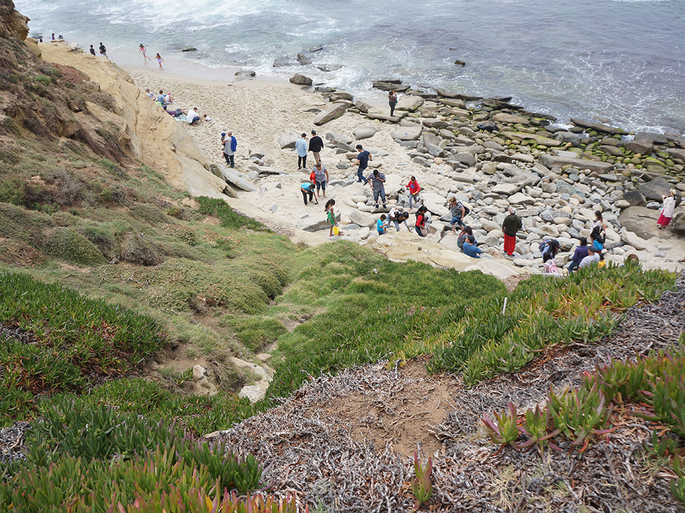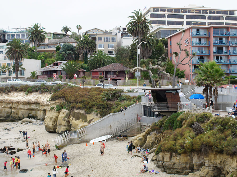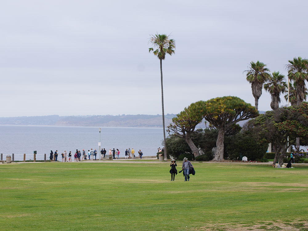 Up on the bluffs above the beach, and stretching south to other nearby beaches, including Shell Beach and Children's Pool Beach, is Scripps Park, a well-maintained grassy area with trees and other plantings. Scripps Park is used for picnicking and relaxing.
