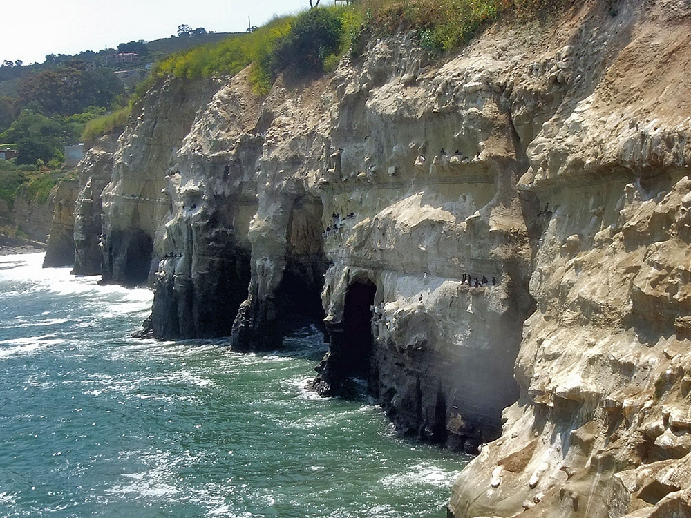 The La Jolla sea caves, or "The 7 caves of La Jolla", are just north of the cove. The best known of these is "Sunny Jim Cave", a short walking distance from the Cove and from the local businesses that are situated up above the shoreline. The cave is accessible through The Cave Store, which charges a nominal fee to go down a staircase leading to the cave itself.