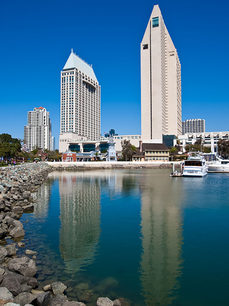 Manchester Grand Hyatt San Diego is a high-rise hotel complex in San Diego, California, composed of two towers. The towers are the third- and ninth-tallest buildings in the city. Developed by Doug Manchester and owned by Host Hotels & Resorts, the taller tower is the tallest building on the waterfront on the West Coast, and with 1,628 rooms, it is Southern California's largest hotel. Because of its proximity to the waterfront, as well as its amenities, the Manchester Grand Hyatt is referred to as a spa and resort.