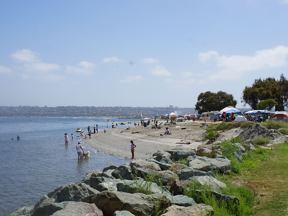 Swimmers and sunbathers take advantage of the warm water, calm surf conditions and the sands of Mission Bay's beaches. Mission Bay offers boat docks and launching facilities, sailboat and motor rentals, bike/walk paths and basketball courts. There are playgrounds for children. Public restrooms and showers are available, and lifeguard stations are located in designated areas.