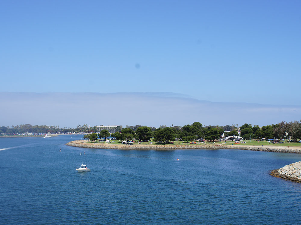 Largest man-made aquatic park in the country created to enhance recreational opportunities in San Diego. Wakeboarding, jet skiing, sailing, camping, cycling, jogging, roller skating and skateboarding, or sunbathing are all popular around the bay