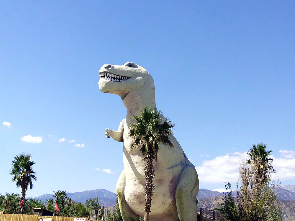 Cabazon Dinosaurs, formerly Claude Bell's Dinosaurs, is a roadside attraction in Cabazon, California, featuring two enormous, steel-and-concrete dinosaurs named Dinny the Dinosaur and Mr. Rex. Located just west of Palm Springs, the 150-foot-long (46 m) Brontosaurus and the 65-foot-tall (20 m) Tyrannosaurus rex are visible from the freeway to travelers passing by on Southern California's Interstate 10. The roadside dinosaurs are best known for their appearance in the film Pee-wee's Big Adventure (1985).