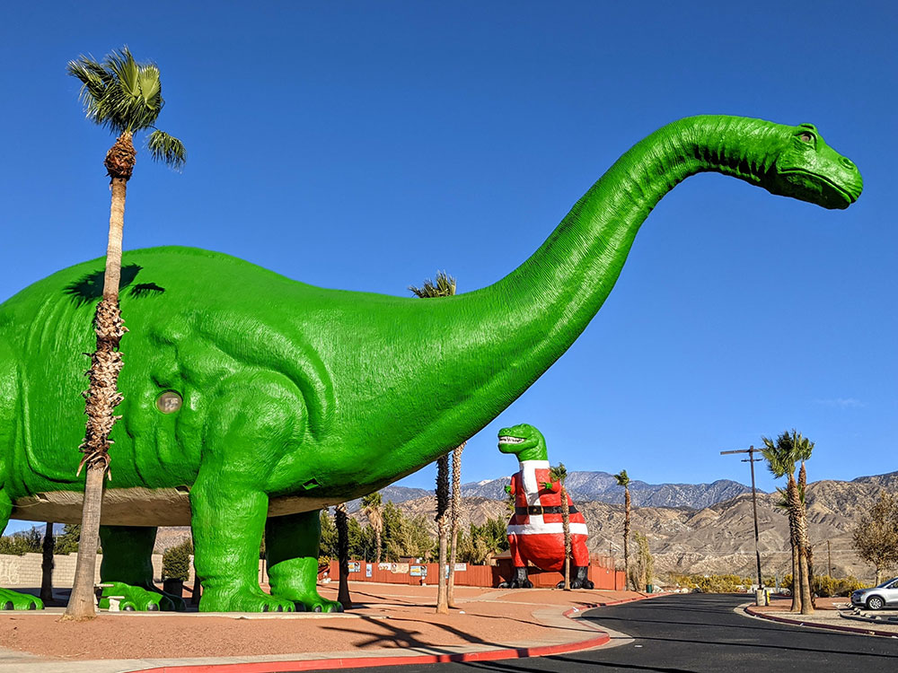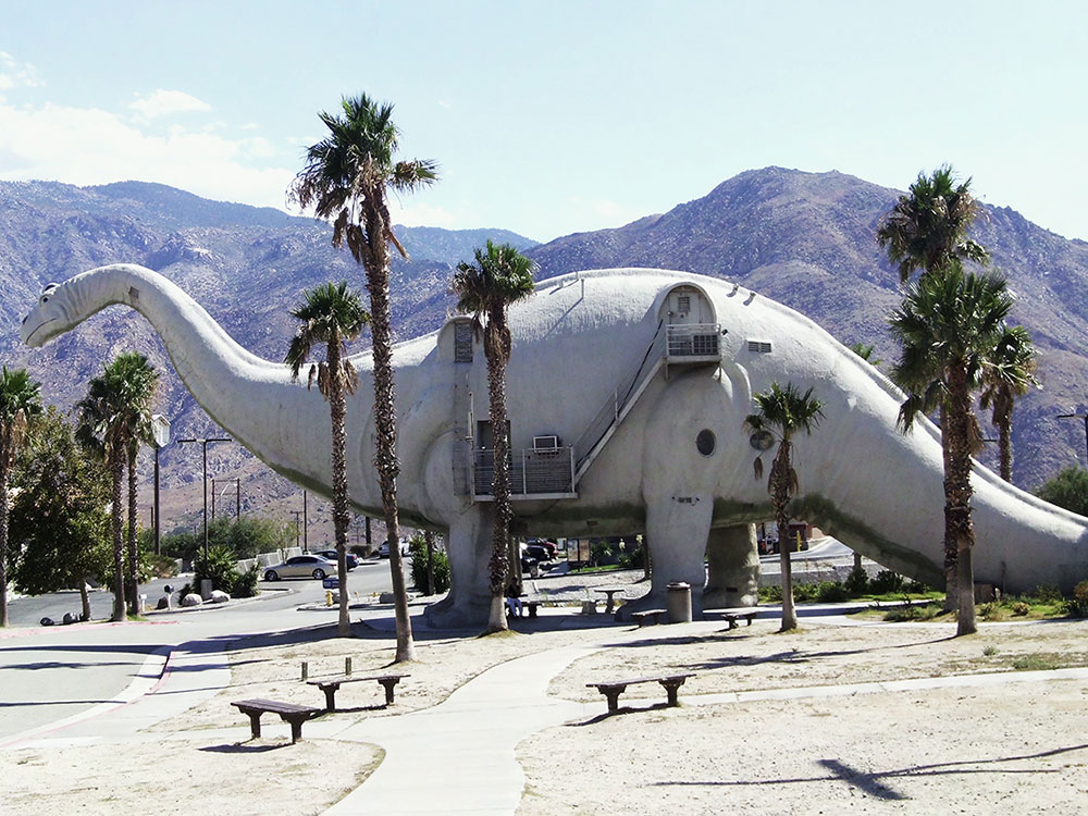 Roadside attraction in Cabazon, California, featuring two enormous, steel-and-concrete dinosaurs best known for their appearance in the film Pee-wee's Big Adventure