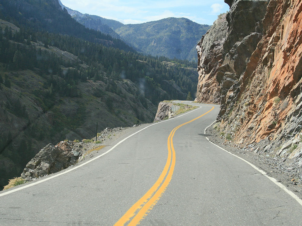 Most of U.S. 550 in Colorado is two-lane mountainous highway. It is one of only two north-south U.S. Highways in Colorado which runs west of the Continental Divide. (The other route is US 491.) The route travels north through the San Juan Mountains.