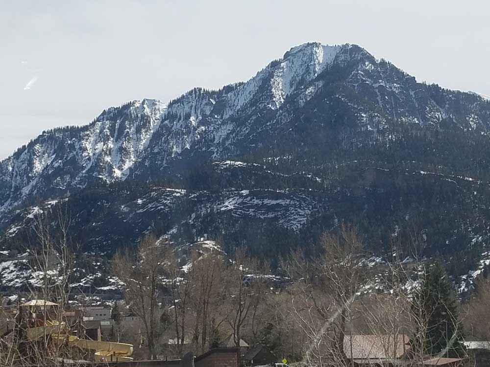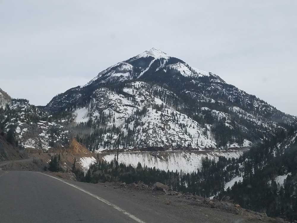 North of Durango, the highway passes by Trimble Springs, hot springs that have been open for visitors since the late 19th century. The highway runs north along the Animas River, under the Hermosa Cliffs. It enters the San Juan National Forest and goes past Haviland Lake and Electra Lake. Drivers pass by Engineer Mountain and Twilight Peak before crossing Coal Bank Pass. Next is Molas Pass, which offers a panoramic view of Molas Lake, the Animas River Gorge, and Snowdon Peak. Northbound travelers then pass through the town of Silverton, elevation 9,320 feet (2841 m), surrounded by 13,000 foot (4000 m) peaks Sultan Mountain, Kendall Mountain, and Storm Peak.