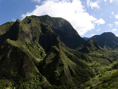 The eastern flanks of both volcanoes are cut by deeply incised valleys and steep-sided ravines that run downslope to the rocky, windswept shoreline. The valley-like Isthmus of Maui that separates the two volcanic masses was formed by sandy erosional deposits.