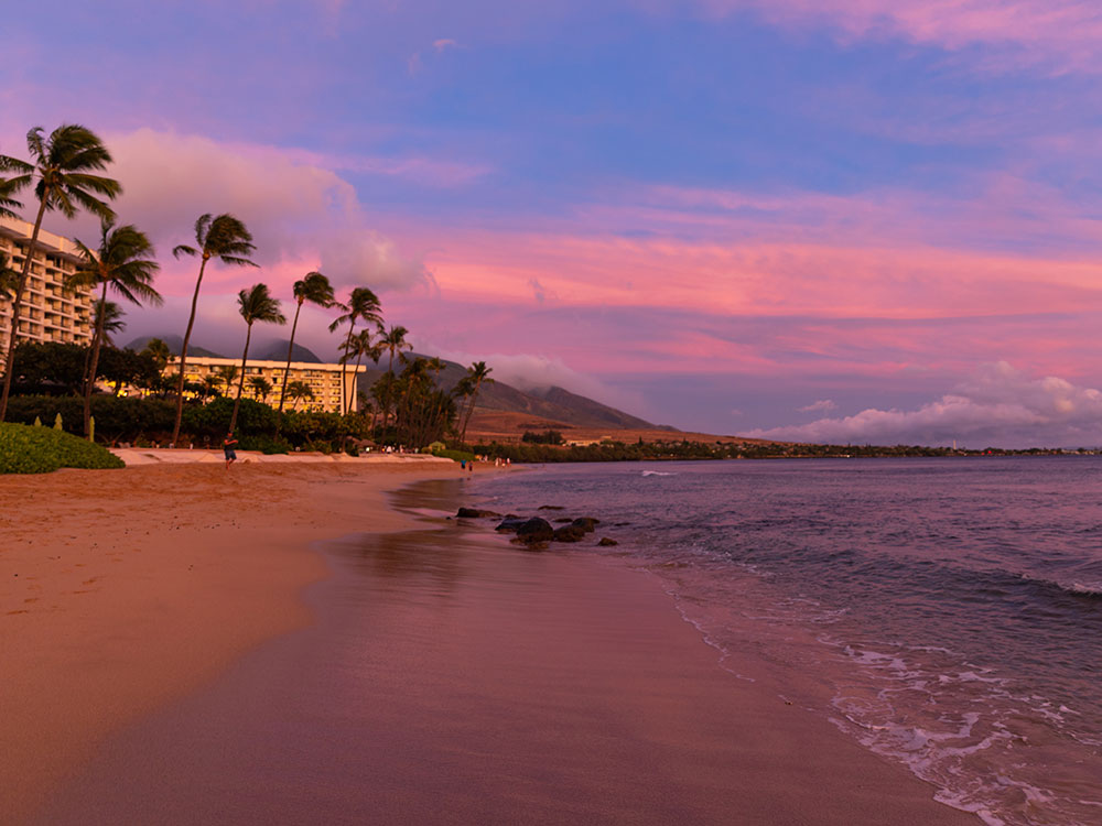 Three-mile stretch of golden sand lined with luxury resorts, shopping, and dining, offering snorkeling, cliff diving, and sunset views along Maui’s west coast.