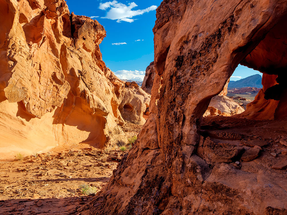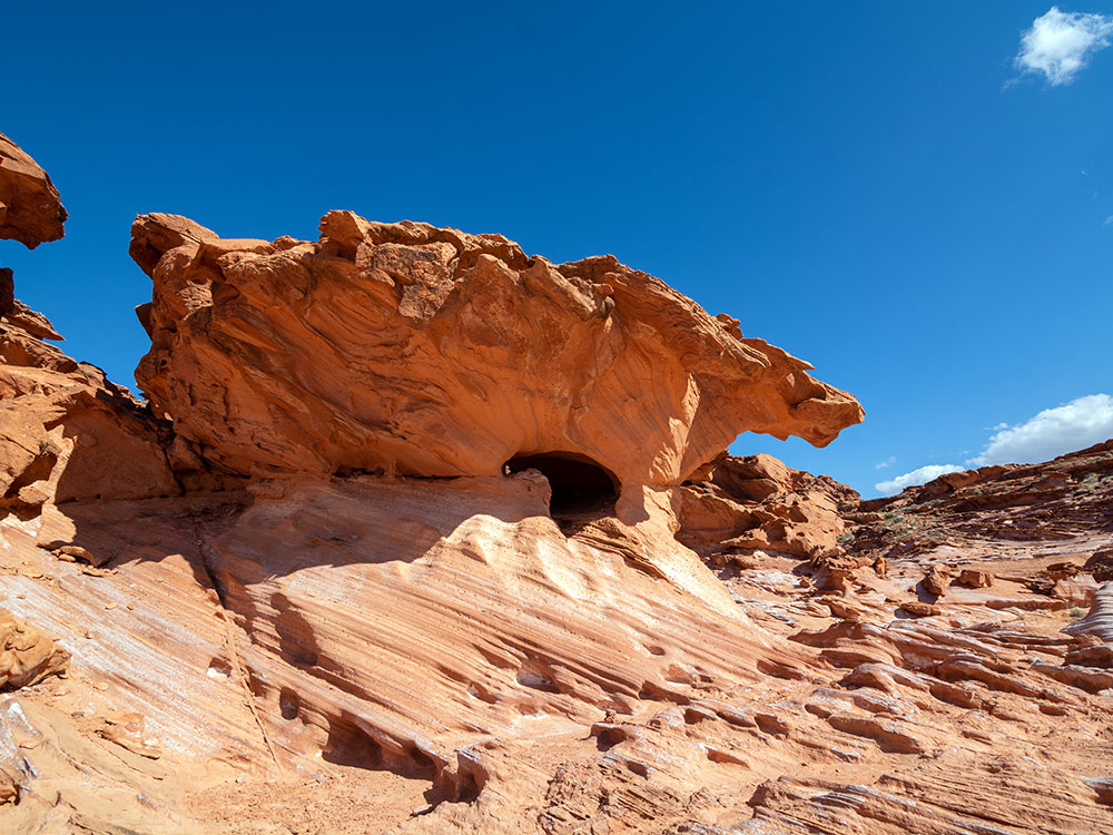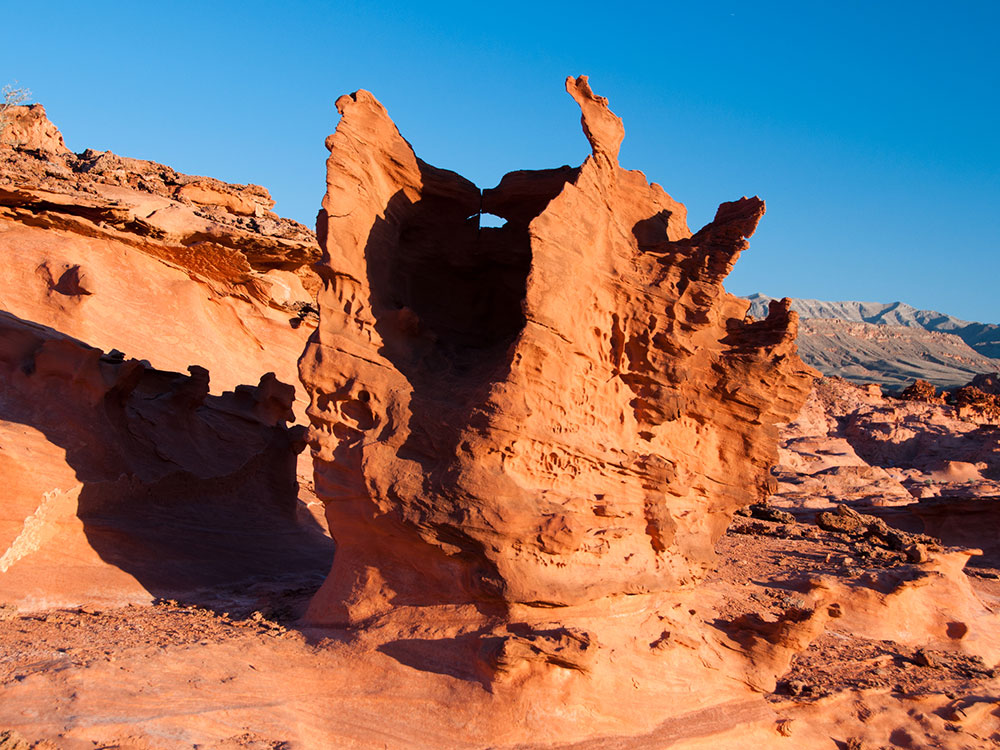 Gold Butte National Monument is a national monument located in Clark County, Nevada, northeast of Las Vegas and south of Mesquite and Bunkerville. The monument protects nearly 300,000 acres of desert landscapes featuring a wide array of natural and cultural resources, including rock art, sandstone towers, and important wildlife habitat for species including the Mojave Desert tortoise (a threatened species), bighorn sheep, and mountain lion. The area also protects historic ranching and mining sites such as the ghost town of Gold Butte, although little but mine openings, cement foundations, and a few pieces of rusting equipment remains. The monument is managed by the Bureau of Land Management.