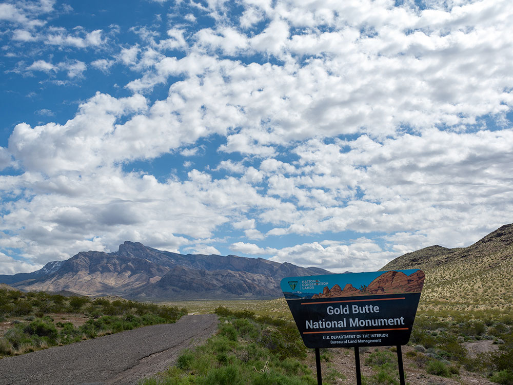 From Las Vegas (90 mi): Take I-15 N to Exit 112 toward Riverside/Bunkerville, cross the Virgin River bridge, then turn right onto Gold Butte Road and follow it south into the monument.