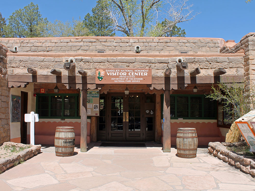 The visitor center at Bandelier National Monument features exhibits about the site's inhabitants, including Ancestral Pueblo pottery, tools and artifacts of daily life. Two life-size dioramas demonstrate Pueblo life in the past and today. Also featured are contemporary Pueblo pottery pieces, 14 pastel artworks by Works Progress Administration artist Helmut Naumer Sr, and wood furniture and tinwork pieces created by the Civilian Conservation Corps during the Depression. A 10-minute introductory film provides an overview of the monument.