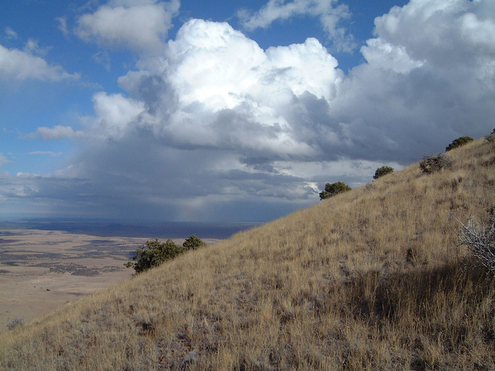 Capulin Volcano is one of the outstanding landmarks located in the northeast corner of New Mexico, where the rolling grasslands meet the foothills of the Sangre de Cristo Mountains. Capulin Volcano's highest point provides unobstructed, panoramic views of the volcanic field, distant snow-capped mountains, and portions of five states (New Mexico, Oklahoma, Kansas, Texas and Colorado).
