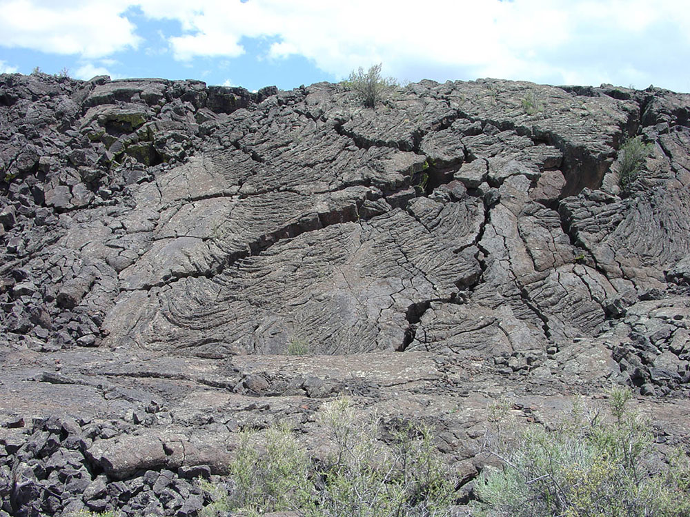 The rugged pāhoehoe and 'a'ā lava flows of the Zuni-Bandera eruptions (also called the Grants Lava Flows) filled a large basin, created by normal faulting associated with the Rio Grande Rift, between the high mesas of the Acoma Pueblo to the east, Mt. Taylor to the north, and the Zuni Mountain anticline to the northwest. Vents associated with these flows include Bandera Crater, El Calderon, and several other cinder cones; more than a dozen older cinder cones follow a roughly north-south distribution along the Chain of Craters west of the monument.