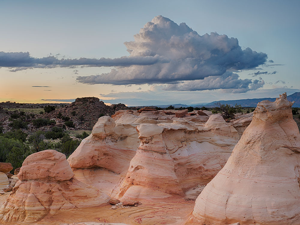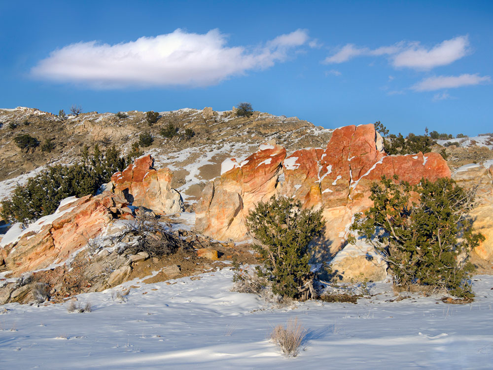 Despite its imposing and desolate appearance, the lands within Ojito Wilderness show evidence of habitation going back millions of years. Many types of fossils are found in the Jurassic-era Morrison Formation sandstone of the area, as well as large sections of petrified trees and one of the largest dinosaur skeletons ever discovered, the Seismosaurus. Evidence of human activity in the area include ruins and artifacts from prehistoric Ancient Puebloans, Spanish, and Navajo, testifying to the ability of these peoples to survive in the hot, waterless environment. Physically, the area is a dry, austere environment of multi-colored sandstone, terraces, box canyons and arroyos. Small amounts of piƱon and juniper can be found in the Wilderness, as well as a unique stand of ponderosa pine, the lowest elevation in New Mexico where these trees can be found.