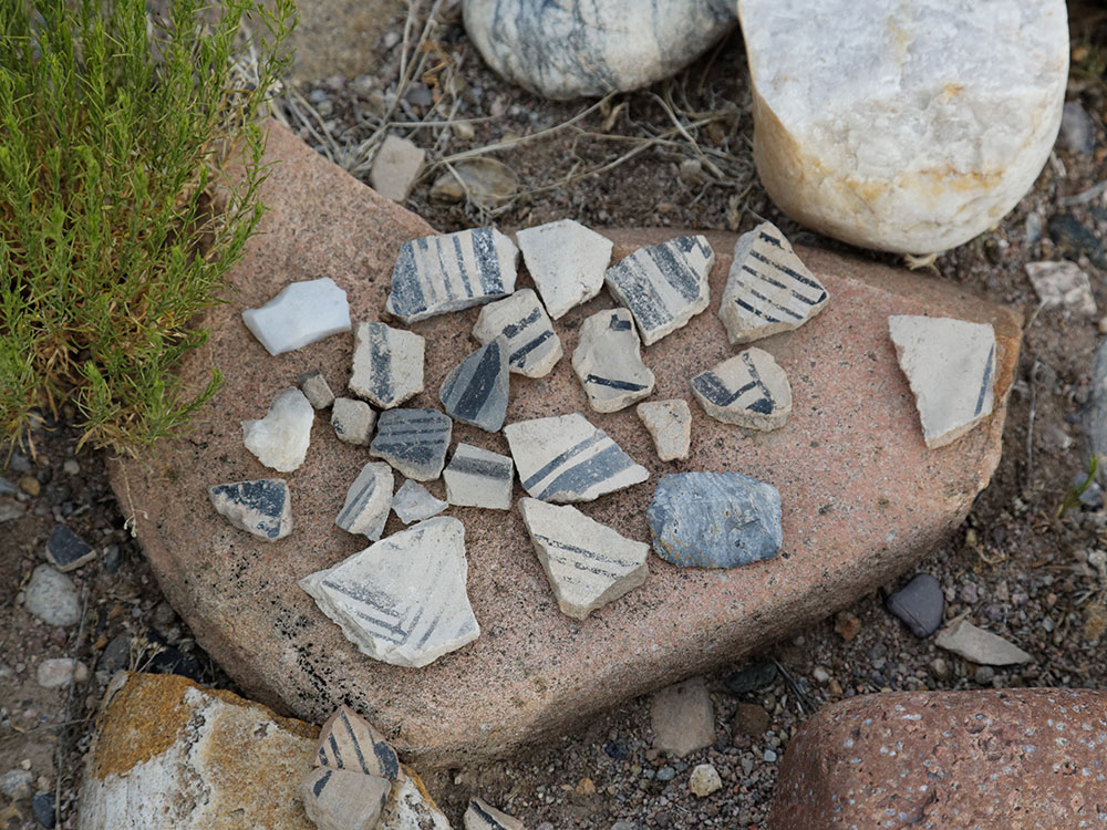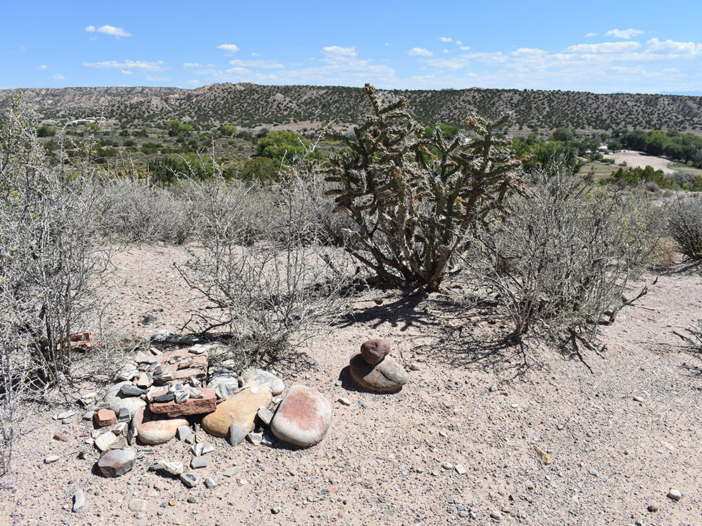 The Bureau of Land Management reports that Posi-Ouinge, the 'Greenness Pueblo,' is a large prehistoric village dated to the 13th through the 16th centuries AD. The pueblo may have had well over 2,000 rooms, making it one of the largest in the southwest. The village was inhabited by Tewa Indians whose descendants now live near the Rio Grande in the Espanola area. The word 'Tewa' refers to a group of Puebloan inhabitants living along the northern Rio Grande and speaking a similar language. Today, the pueblo lies above the hot springs resort at Ojo Caliente. A short, self-guided hike beginning just west of the Mineral Spring Hotel takes you up onto the river terrace above and then around the site through room blocks and to vistas with beautiful views of the Ojo Caliente valley.