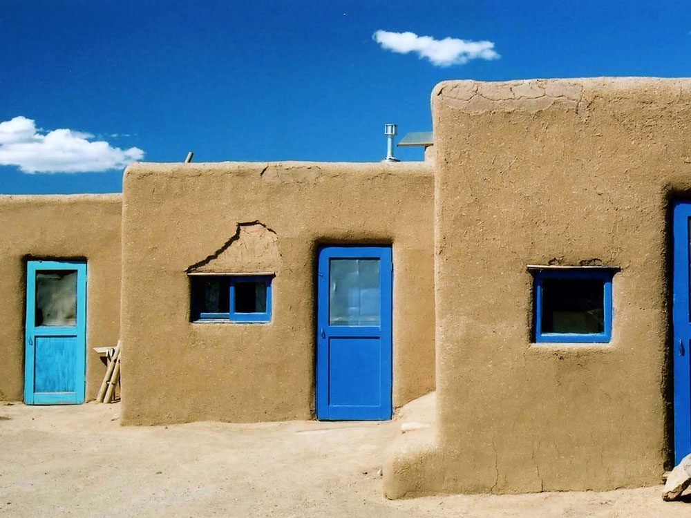 The homes in this structure usually consist of two rooms, one of which is for general living and sleeping, and the second of which is for cooking, eating, and storage. Each home is self-contained; there are no passageways between the houses. Taos Indians made little use of furniture in the past, but today they have tables, chairs, and beds. In the pueblo, electricity, running water, and indoor plumbing are prohibited.
