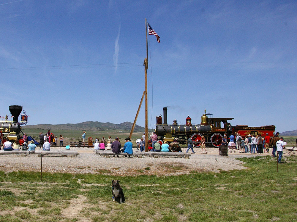 It commemorates the completion of the first Transcontinental Railroad where the Central Pacific Railroad and the first Union Pacific Railroad met on May 10, 1869. The final joining of the rails spanning the continent was signified by the driving of the ceremonial Golden Spike.