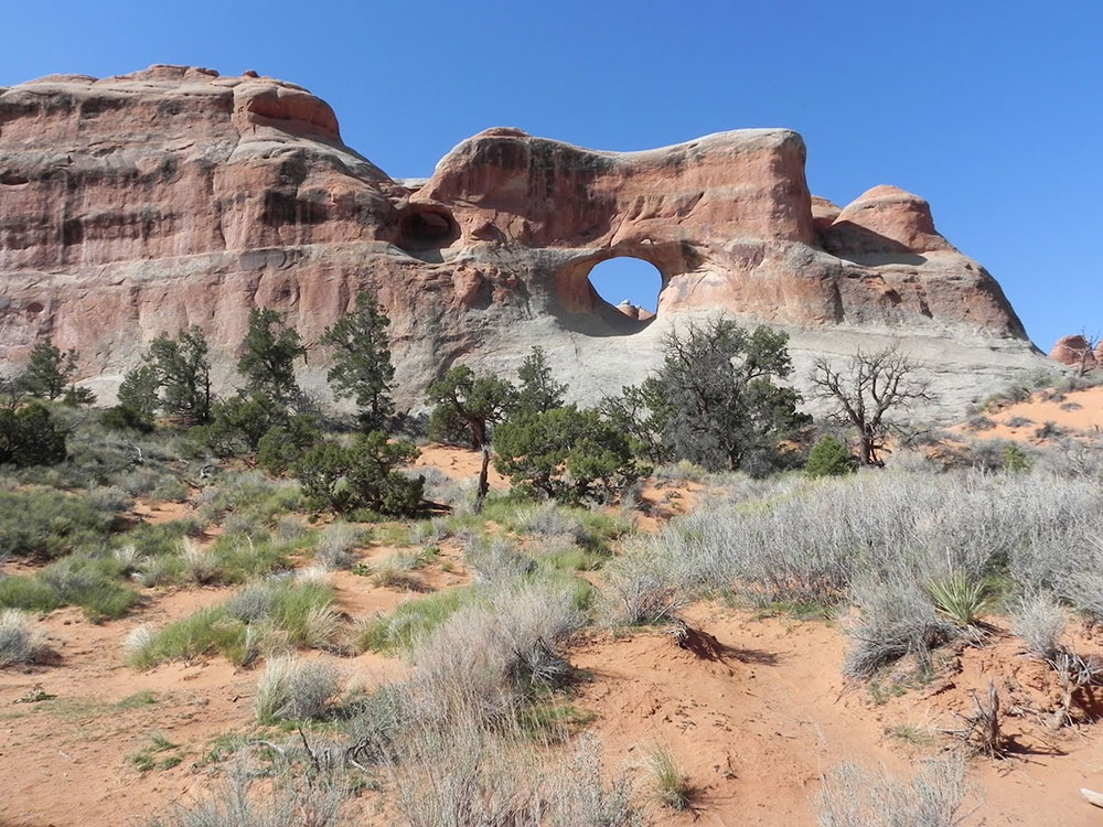 The trailhead for Devils Garden is located at the end of the main park road. A campground and amphitheater are also available at the site.