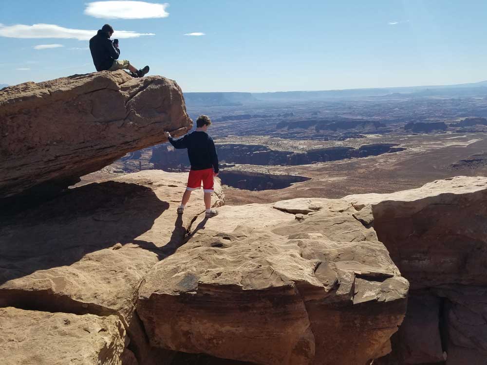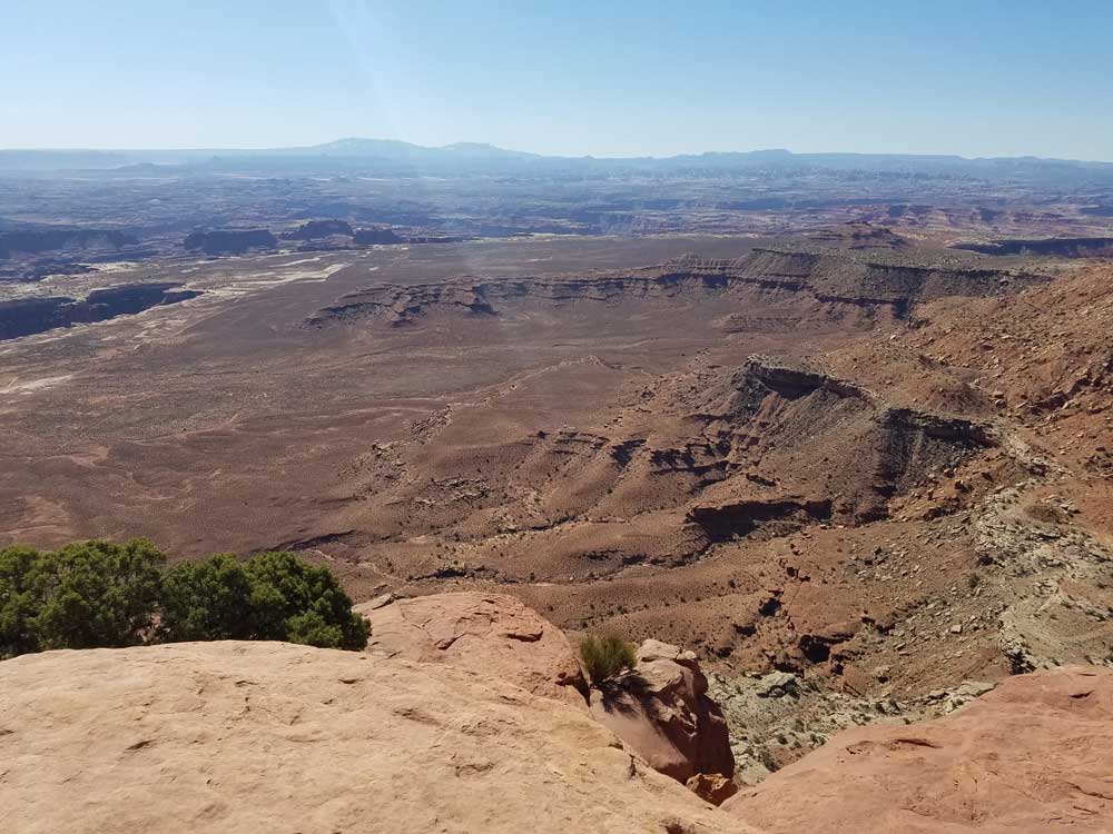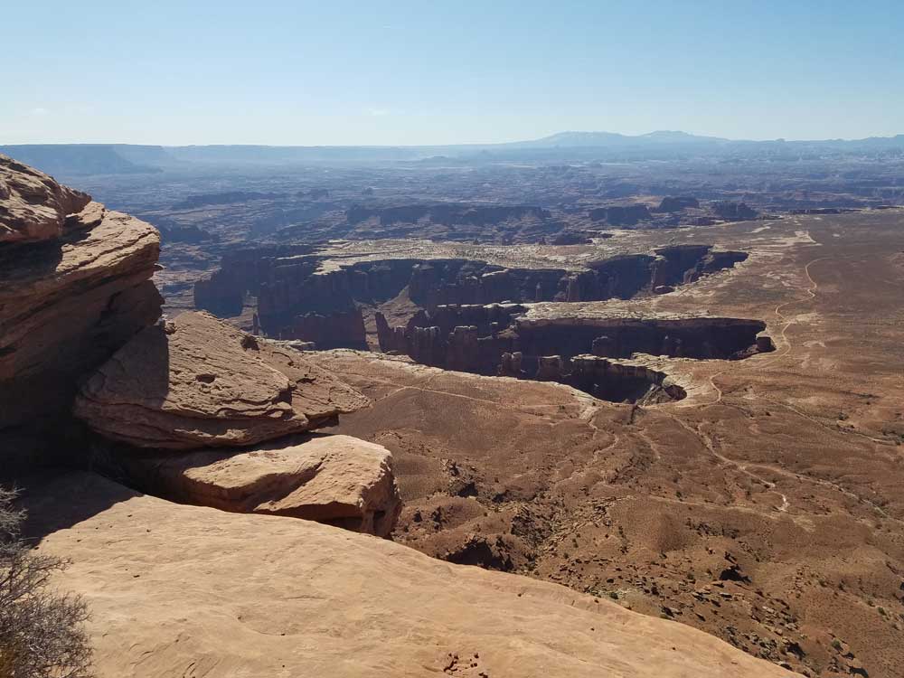 Grand View Point lies at the southernmost point of the Island in the Sky scenic drive. From here, you can see the White Rim, features in The Maze and The Needles, and distant mountains. A short, paved sidewalk leads to a spectacular viewpoint. From there you can hike an additional mile to a second viewpoint.