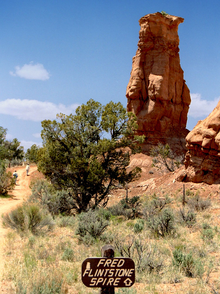 Evidence near the park suggests that Native Americans were the first to wander through the area. Around the turn of the 20th century, cattlemen from Cannonville and Henrieville used the basin as a winter pasture. In 1948 the National Geographic Society explored and photographed the area for a story that appeared in the September 1949 issue of National Geographic. They named the area Kodachrome Flat, after the brand of Kodak film known for its vibrant color rendition. In 1962 the area was designated a state park. Fearing repercussions from the Kodak film company for using the name Kodachrome, the name was changed to Chimney Rock State Park, but renamed Kodachrome Basin a few years later with Kodak's permission.