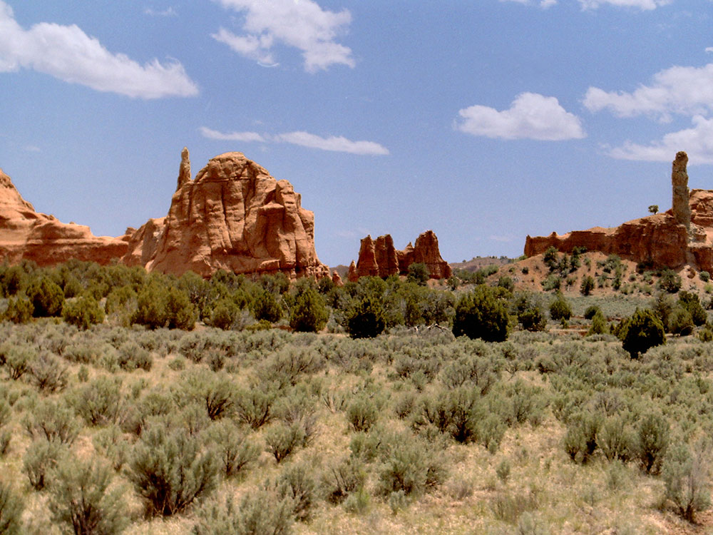 The geologic interest of the park are sandstone spires and columns called sand pipes, believed to be found nowhere else on earth. Differing geological explanations of the features in Kodachrome Basin State Park exist. One explanation is that the area was once similar to Yellowstone National Park with hot springs and geysers, which eventually filled up with sediment and solidified. Through time, the Entrada sandstone surrounding the solidified geysers eroded, leaving large sand pipes. Sixty-seven sand pipes ranging from two to 52 meters have been identified in the park.